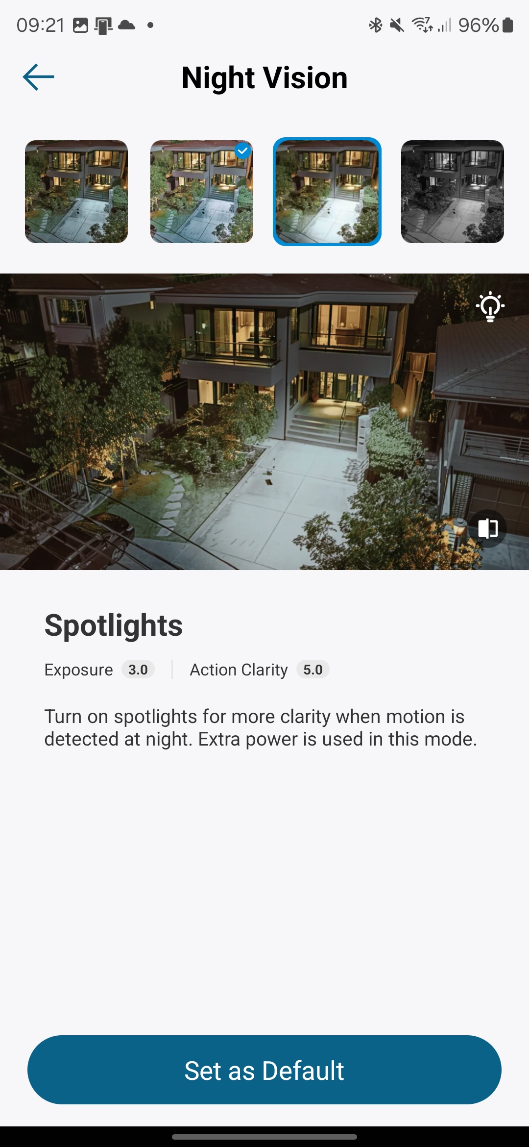 • Spotlights trigger the spotlights for improved illumination at the cost of battery life.