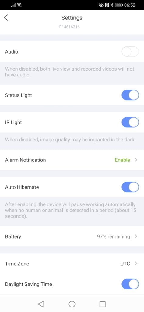 All the other cameras I have used from Ezviz have motion zones, allowing you to optimise recording and notifications. This does not have them. It is reasonably common with battery-powered cameras, but many newer models have zone features. Furthermore, a growing number of devices have AI object detection reducing false alerts further.
