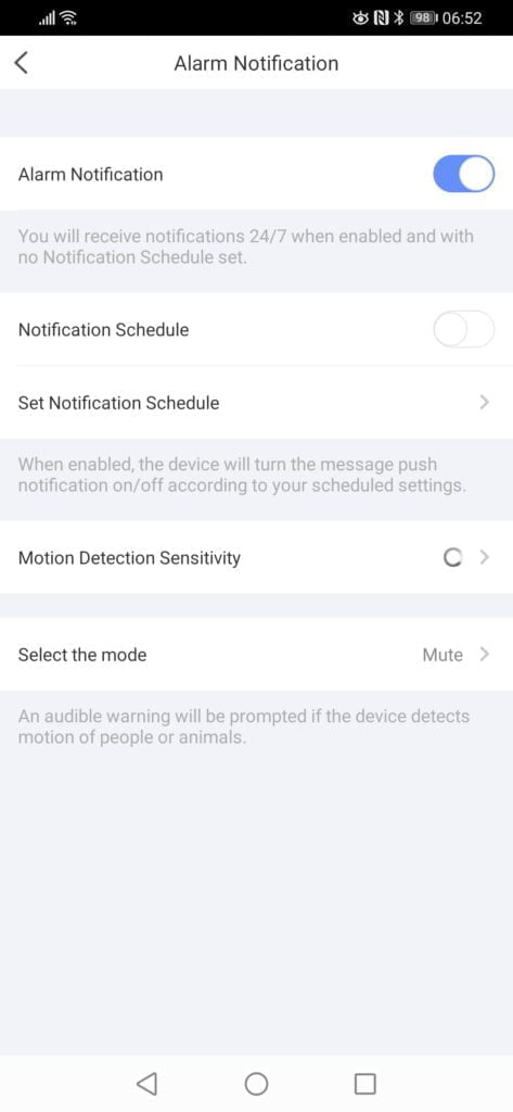 Similar to the other cameras, to modify motion recording, you need to go to Alarm Notification, enable alarm notification, and this will allow you to tweak the motion settings. It doesn’t make the most sense, but it is what it is.