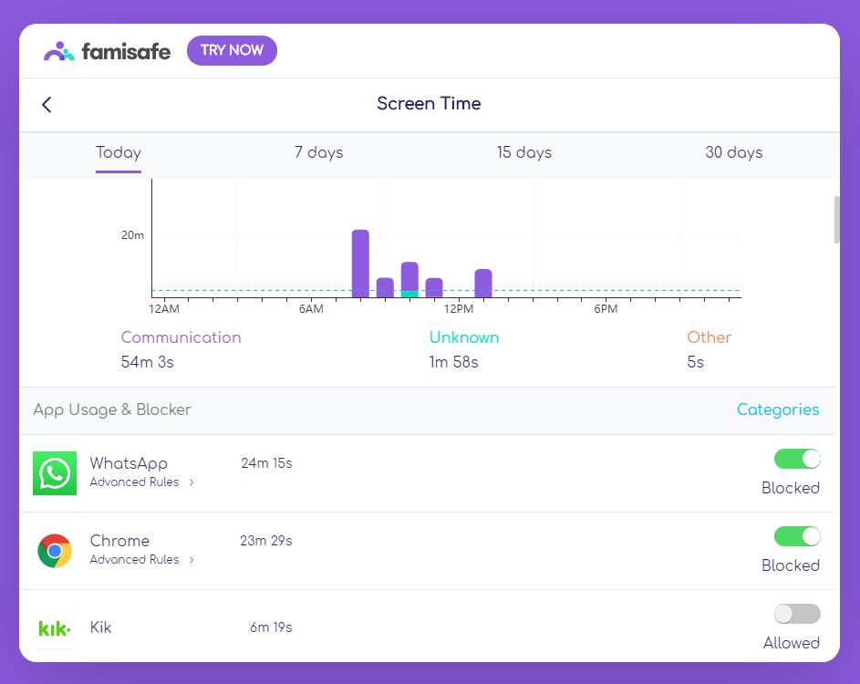 Famisafe is one such option that offers extensive features and comes in subscription format with annual planes for just $59.99. This will then cover up to 30 devices per account, so if you have multiple children perhaps with a tablet and phone each, then this will cover them all.