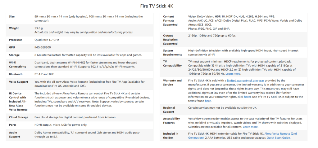 This year’s model has some small but crucial updates; the Fire TV Stick now supports HDR in the form of HDR 10, 10+ and Dolby Vision. As far as I am aware, this makes this easily the cheapest Dolby Vision/HDR10+ device on the market, and the Apple TV 4K is the only other option unless you get a DVD player or an Xbox One X.