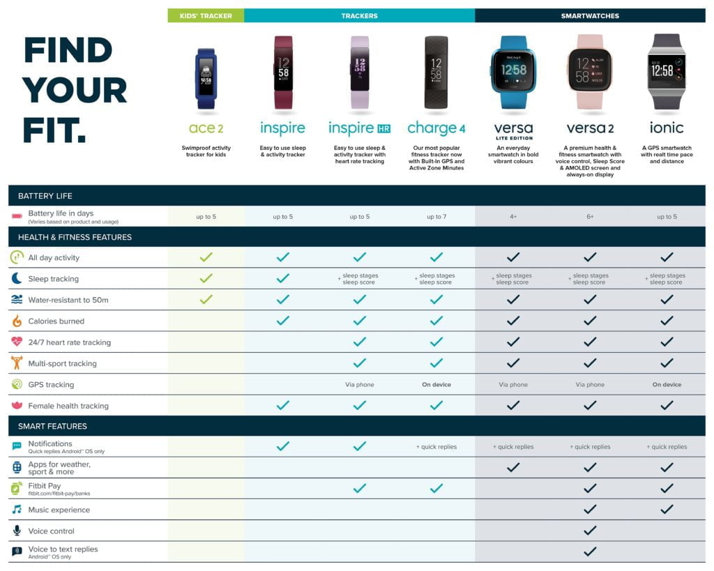 I won’t make a detailed feature comparison, but as far as the Fitbit line-up goes there are only two devices with GPS, the new Charge 4, and the old and ugly Ionic.