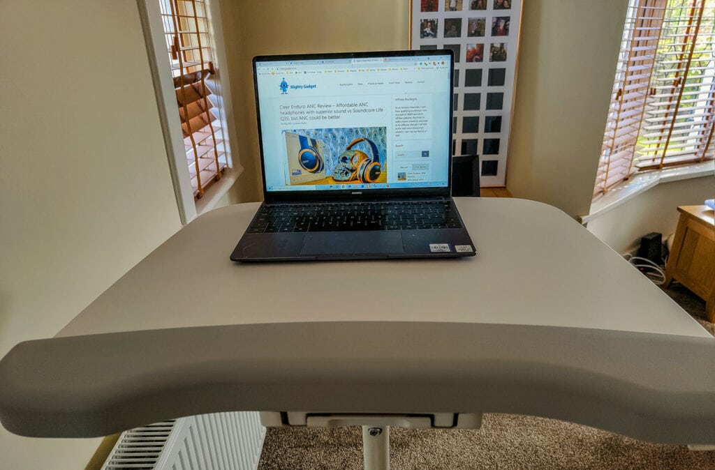 As you would expect, the table is quite small, so this is only suitable for a laptop, which unfortunately rules this out as a long term solution for me. I use 3 large monitors, I couldn’t cope working all day on a laptop. However, I have used this regularly in the evening for general admin work, which has worked well for me, stopping me from lying down on the couch all night.