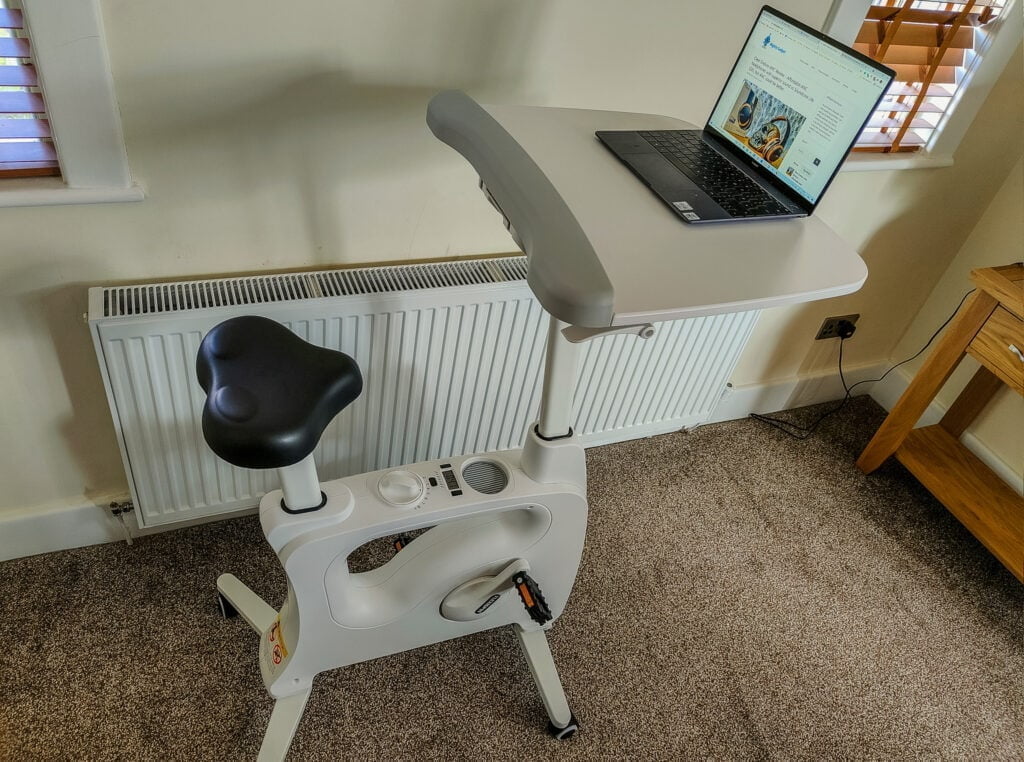 The Fitdesk 3.0 Desk Exercise Bike is £379, which can be collapsed down to be a bit more storable, but I am not sure about the overall design of it.