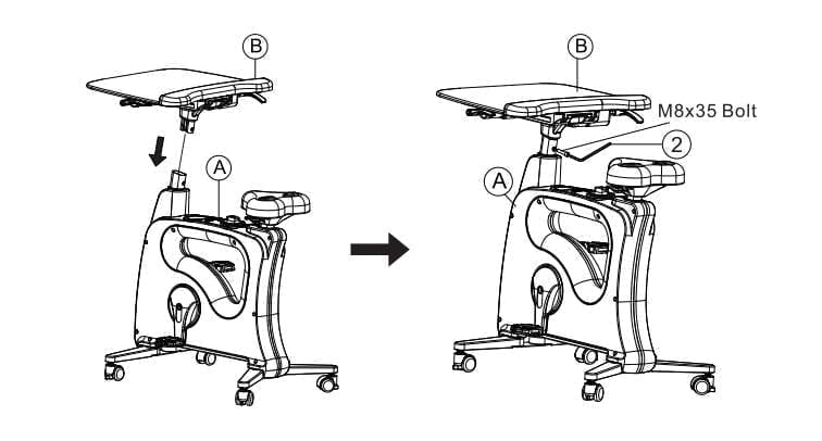 The bike arrives in two boxes, the bike itself, then the desk. Assembly consists of: