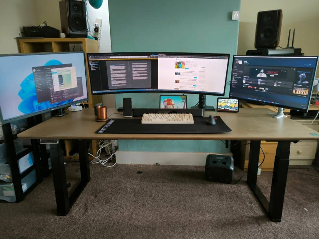 One of the main reasons I never committed to a sit-stand desk before was that I use three monitors. One is the 27” Innocn 27C1U, I then have a 30” Samsung monitor and finally, the massive Samsung C49RG90 49” super ultrawide monitor.