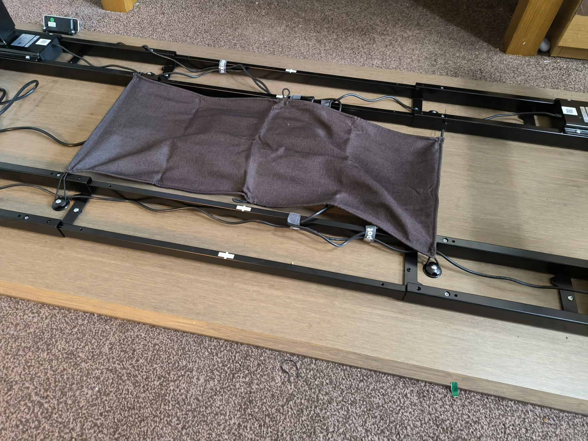 The cable management cloth does a good job of keeping the Flexispot cables tidy.