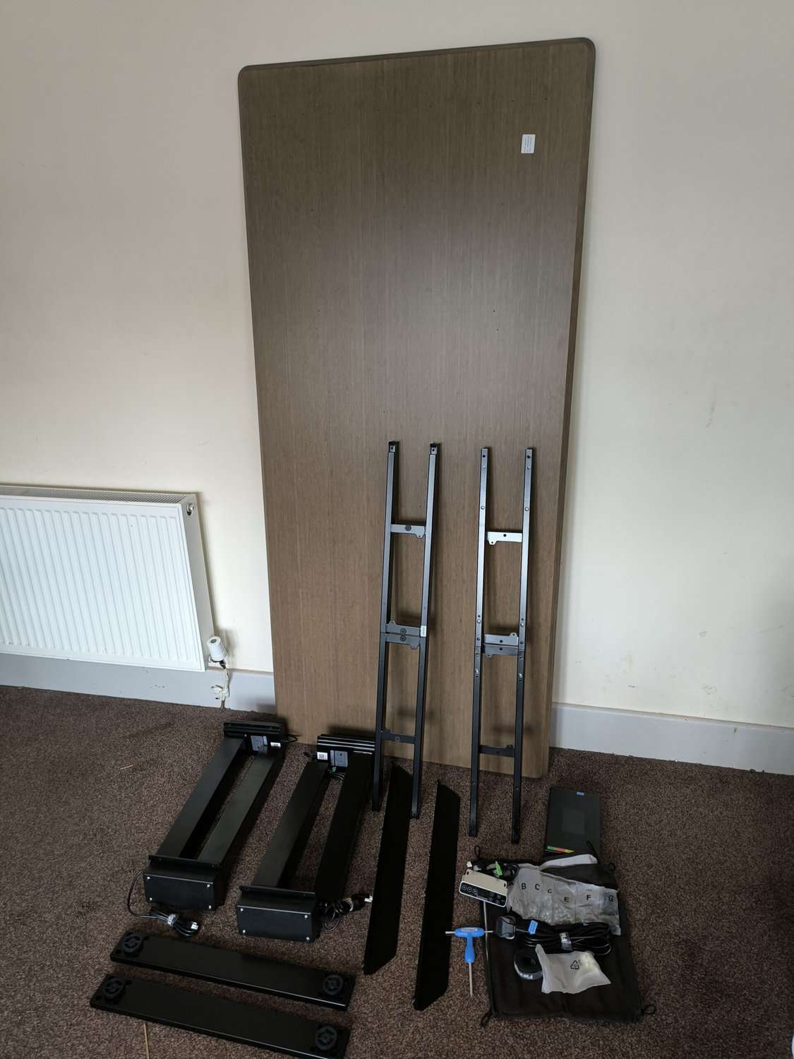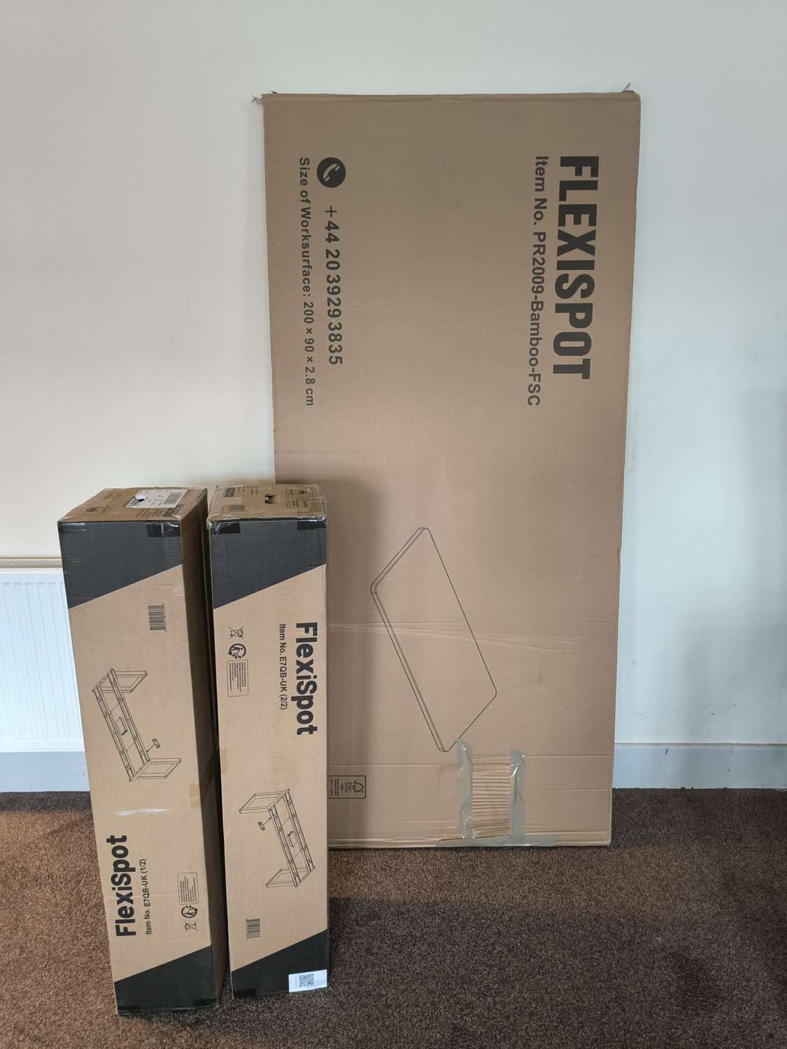 This table arrives in three packages: two for the table frame and then the desktop. Each box for the table weighs over 30kg, so you may need help carrying them.