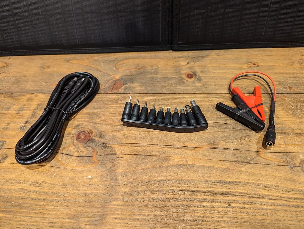 This has 10-interchangeable tips, making it compatible with Jackery or other solar panels with a DC input. Like some other generic panels, it lacks the MC4 / XT60 connection which you see on many big brands such as EcoFlow. So you won’t be able to wire up lots of panels in serial or parallel.