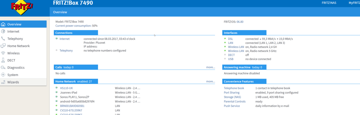 One of the main selling points of FRITZ!Box is the built-in phone functions, you can connect normal analogue phones, as well as IP phones. It is even compatible with up to 6 cordless phone using DECT. The router also has contact synchronisation and can send and receive faxes. This goes a long way to justify the increased cost compared to other brands.