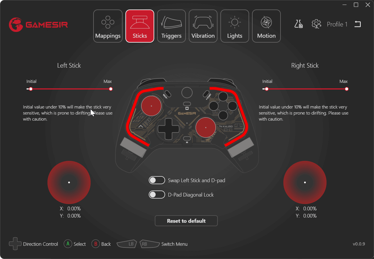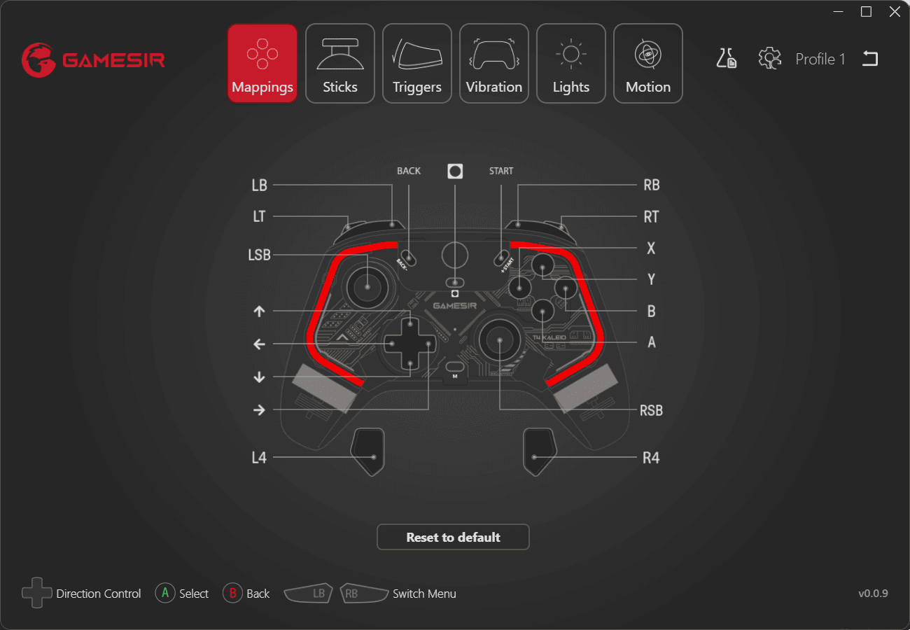 - GameSir T4k App software. Map buttons, tweak D-pad diagonal, adjust sticks & triggers zone, configure vibration, fine-tune light effects, etc. Experience the special motion aim/steer feature for all games.