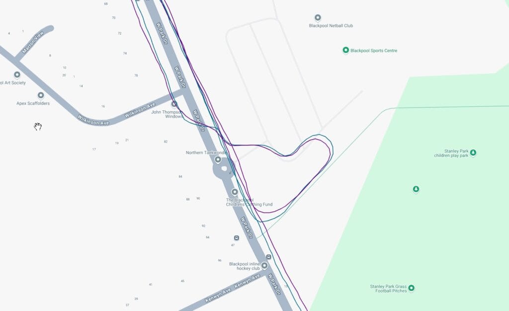 - Consistent accuracy in open areas: During road and gravel rides, the GPS tracks were nearly perfect, with minimal deviation from the actual route.