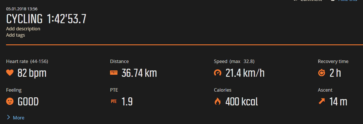 The Movescout software that the Suunto use both on the phone and mobile app are much nicer looking than the Garmin equivalent, but if I am honest, I am not very fond of it. For looking at your individual activities it is excellent, you get lots of data to obsess over, but for day to day activity, it is almost useless. You can’t view each days heart rate or steps, and the online site doesn’t give you any resting heart rate date. Many people won’t care about this, but as a former user of the Fitbit Charge, I quite like keeping track of my steps and resting heart rate. In terms of steps, the Suunto won’t track a single step when cycling, technically this is correct, but if you are moving from Fitbit or Garmin it will provide different results.
