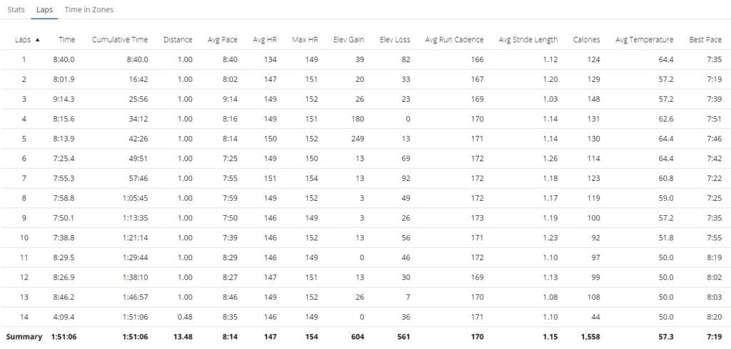 Paranoid that the times and distance was wrong I ran to 13.5 miles just to be sure.