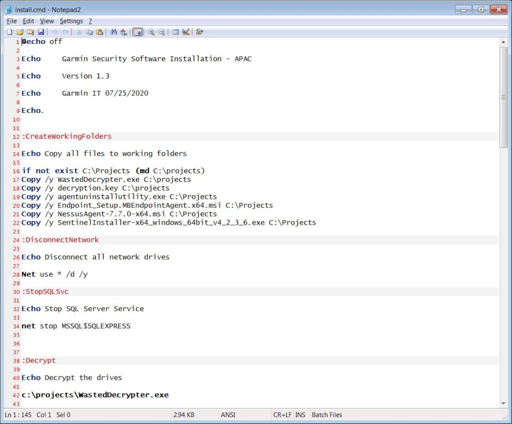 BleepingComputer has now gained access to an executable created by the Garmin IT department to decrypt a workstation and then install a variety of security software on the machine.