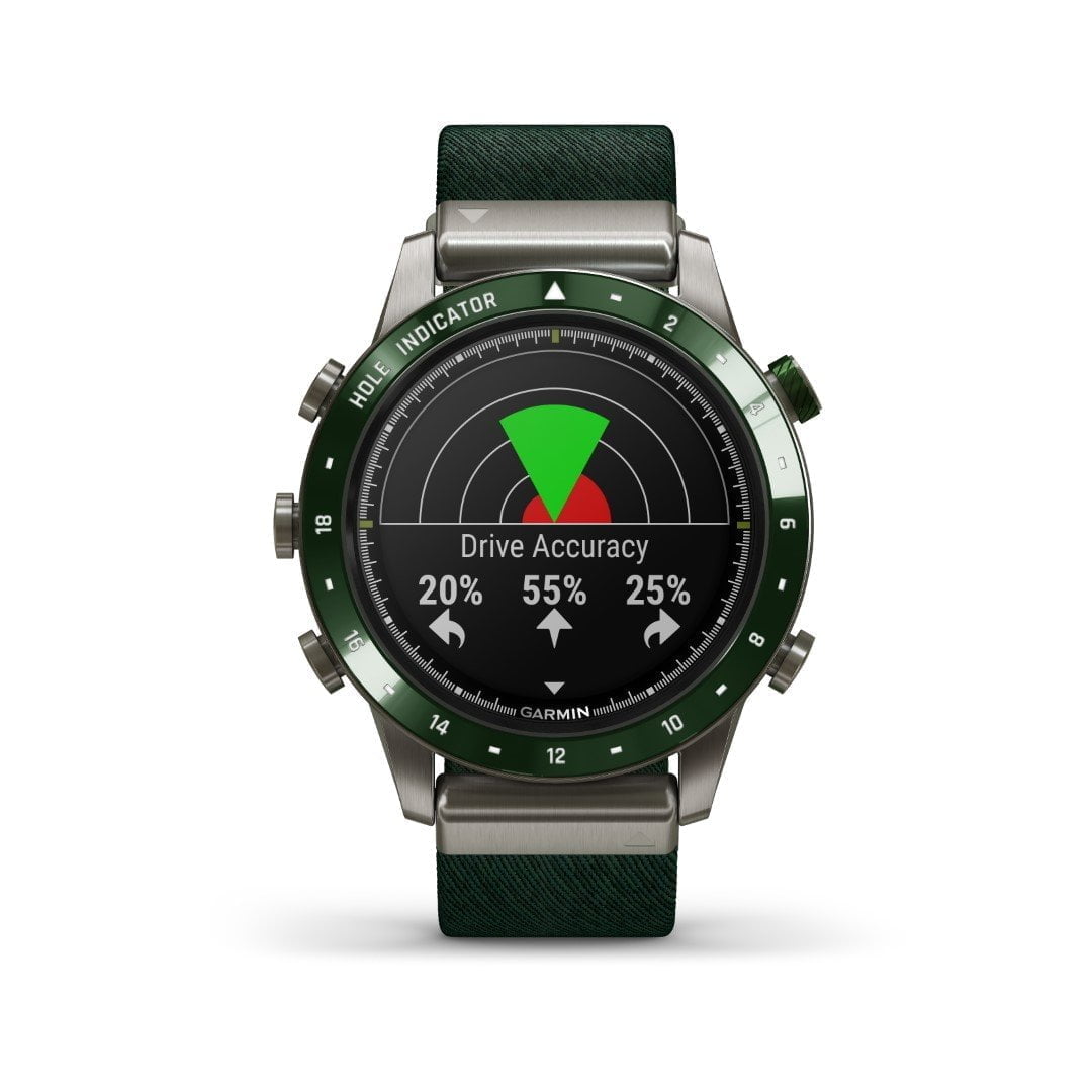 - Pairs with compatible Garmin golf watches to automatically track every stroke, including shot locations, distances and club type without additional effort