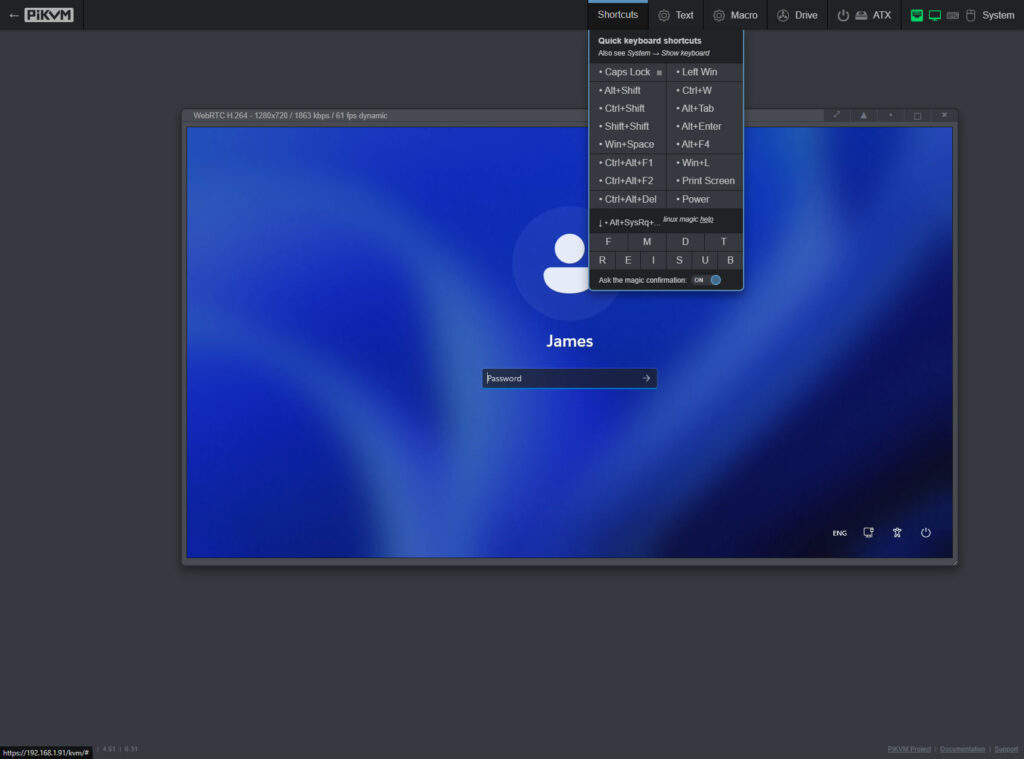 The web interface works well in most modern browsers and is responsive even on slower connections. Mouse movement shows some latency with a trailing cursor effect, which is normal for KVM-over-IP solutions and doesn’t significantly impact usability for most administrative tasks.