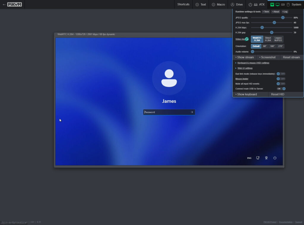 • Web UI: In addition to VNC, PiKVM offers a lightweight web interface for management tasks, providing access without the need for proprietary software.