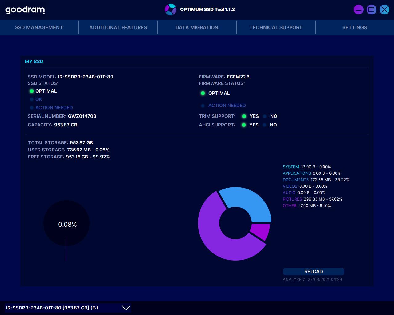 Goodram has its own software to manage firmware, monitor the drive status and handle disk cloning. It is surprisingly well designed.