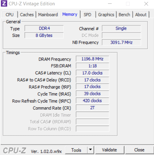 CPU-Z indicated the RAM was running at 2400MHz with the timings at CL17-17-17