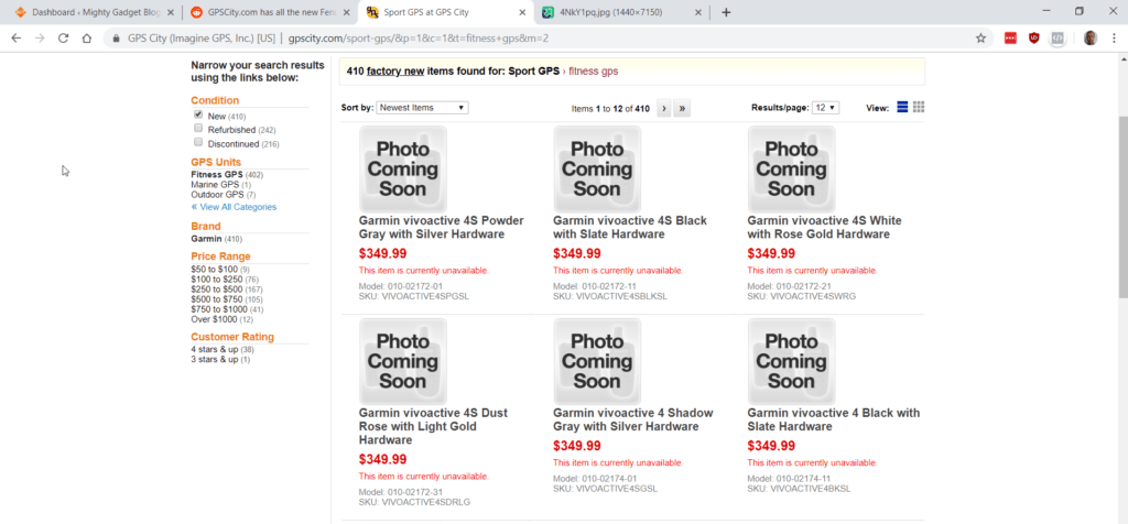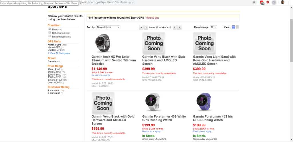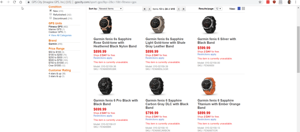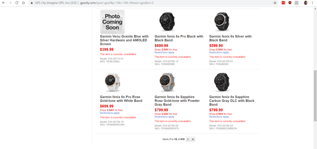 GPScity has just listed multiple models, the products show up in the category page, but the product details pages produce a 404 error. GPScity is a well-established company, though they have some shocking reviews. It could be an underhanded way to gain rankings in Google, or someone just published a little too soon.