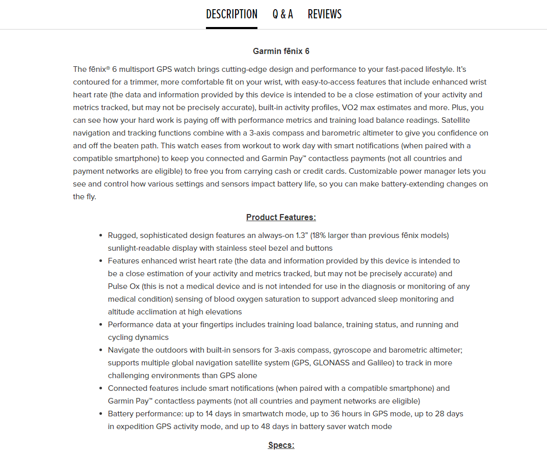 This well-known company, often promoted by DC Rainmaker, has listed just the normal Garmin fēnix 6 priced at $599.99. The page has been taken down, but Google Cache still has the listing