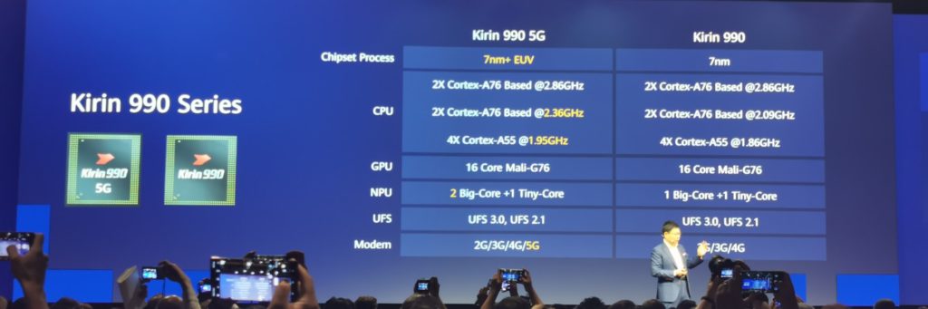 The none 5G version still uses the normal 7nm fabrication process we saw on the Kirin 980, and the same as Qualcomm.