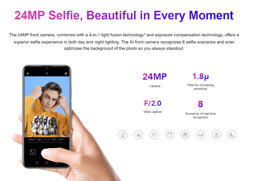 From what I can tell the camera set up is the only thing differentiating this from the Huawei P Smart 2019, which has a rear 20MP lens with f/1.8 aperture plus 2MP depth sensor then 8MP, f/2.0 aperture on the front.