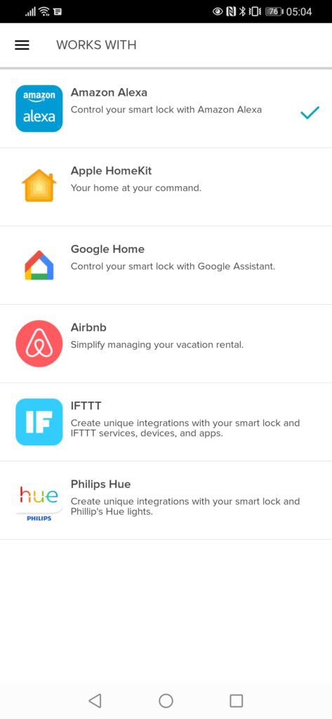 - Within the Yale app, go to the upper left burger menu and select Works with