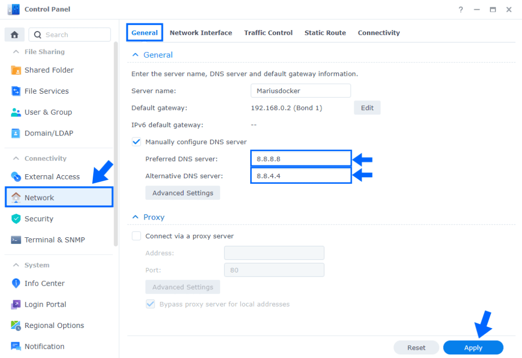 6. Apply Changes: Click the “Apply” button to save the new settings. Your Synology NAS may take a moment to apply these changes.