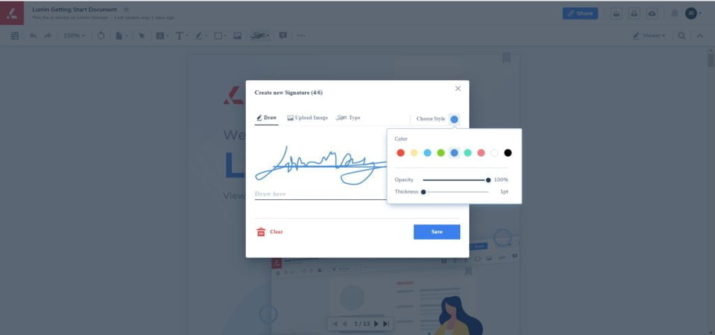 Adding a signature to a form in Lumin PDF – Fill out a PDF Online