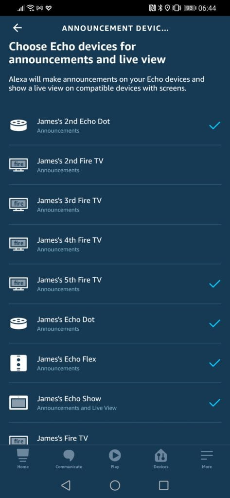 If you have had a lot of Alexa enabled devices in the past, it is a bit of a nightmare. FireTV devices get listed, and there is no logical way of me know what is what. It is a complete mess, but this is where you enable the devices (writing this guide made me realise my recent purchase of the Echo Flex was not enabled).