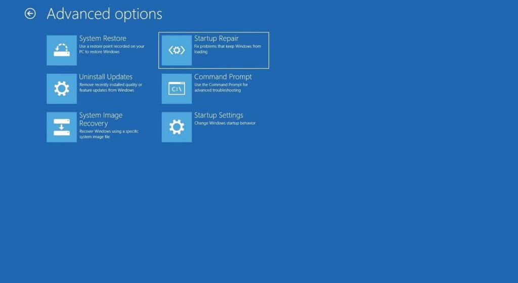 2. Now, click on Startup Repair. It will take your Windows 10 only a few minutes at most to try and fix the issue for you. Sometimes, it’s fixed within seconds too. However, if the problem is not caused due to the startup, the Startup Repair will tell you that the problem can’t be fixed. In that case, you might have to consider other options.
