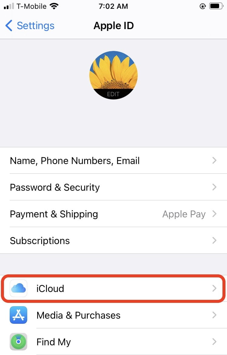 - Tap on “iCloud.”