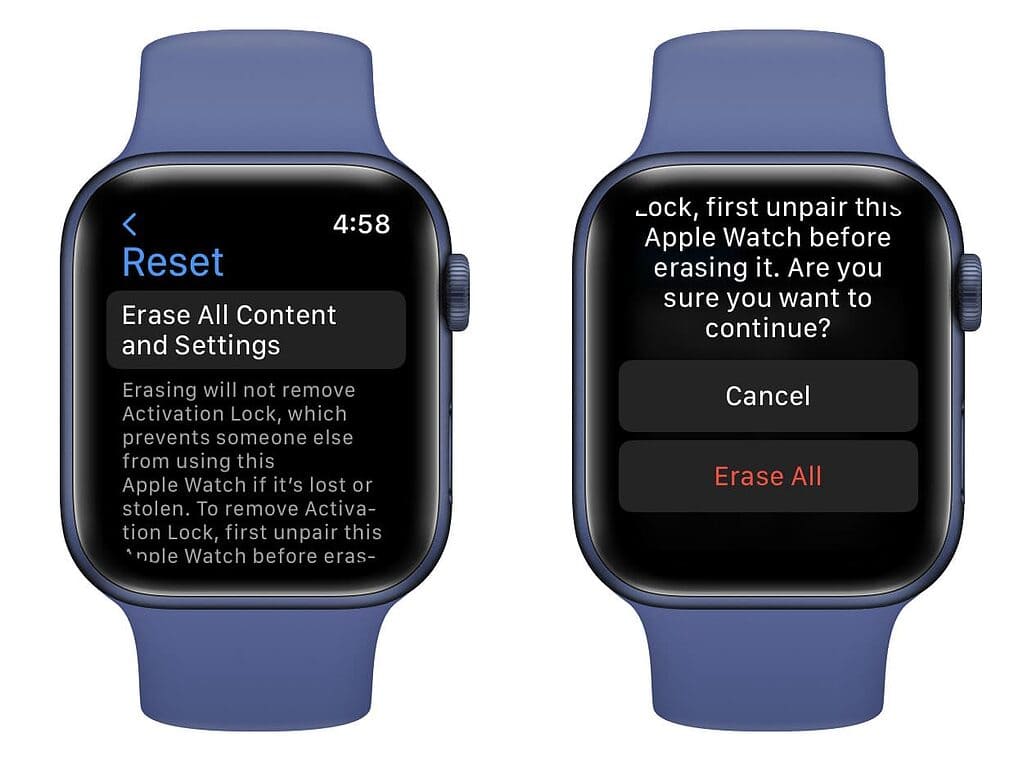 - Once the process is complete, your Apple Watch will restart and you will be prompted to set it up as a new device.