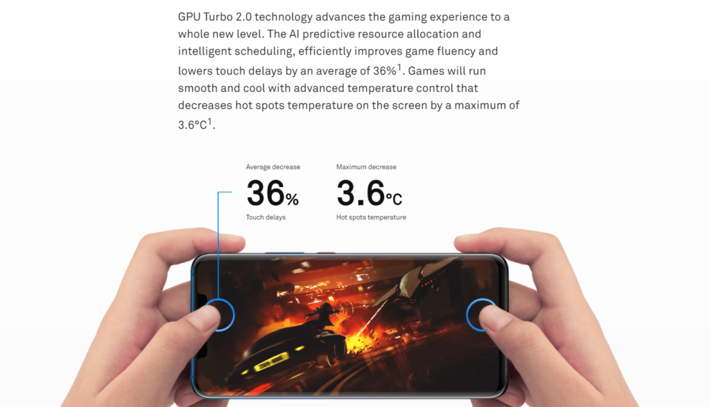 The new EMUI 9 software brings all the improvements of Android Pie, along with many additional improvements made by Huawei themselves. These include GPU Turbo 2.0 which has lower latency, an all-new app assistant, and support for four new titles: Vainglory, Arena of Valor, Rules of Survival, and NBA 2K18.
