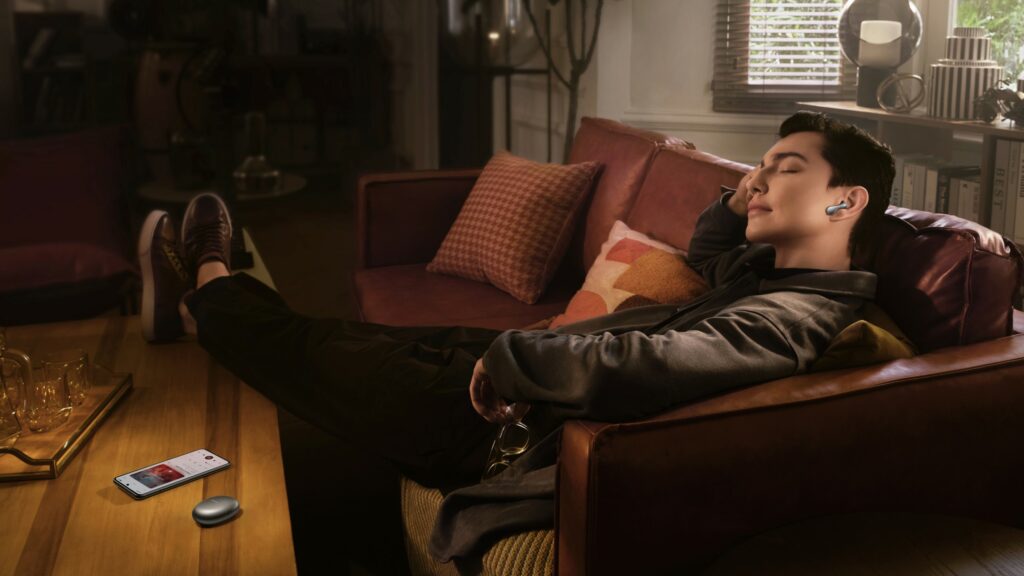 Apparently, it’s not just for aesthetics. The double-C curves fit the contours of the ears. The droplet-shaped design provides a larger contact area between the earbuds and the ears, which reduces strain and results in a breathable wearing experience. The arc-shaped stem ensures that pressure is evenly distributed when an earbud is tapped, so that interactions are nimble and effortless.