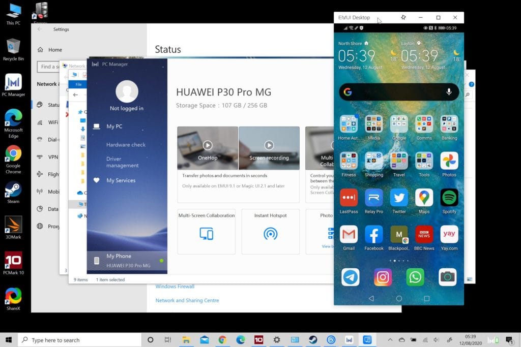 Tapping your phone on the Huawei Share sticker allows to control your phone via the desktop giving you direct access to everything you do on your phone. It works well, especially if there are any apps that are phone only.