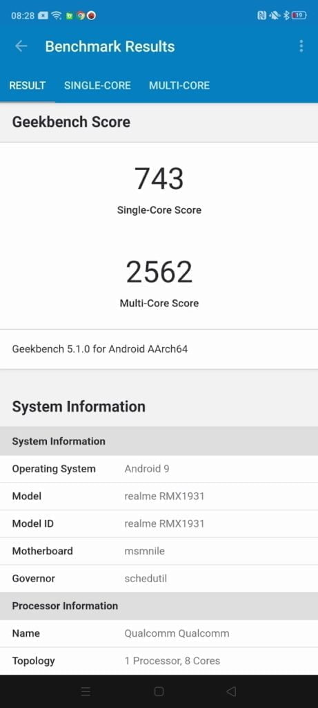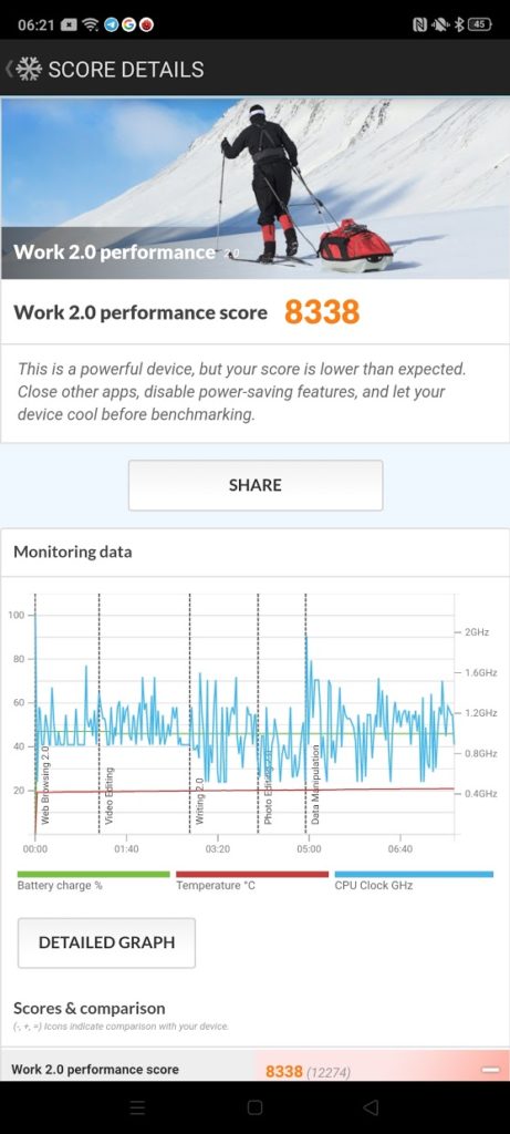 The Realme crashed on the 1st test, so for now it is just the 2nd result I can compare.