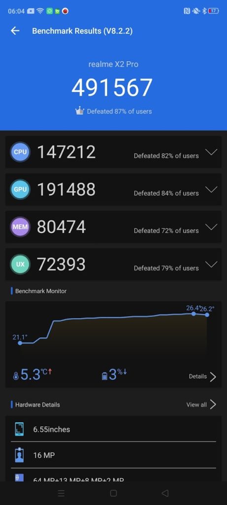 The Realme X2 Pro managed 10 hours 7 mins with a screen on time of 8 hours 34 mins.