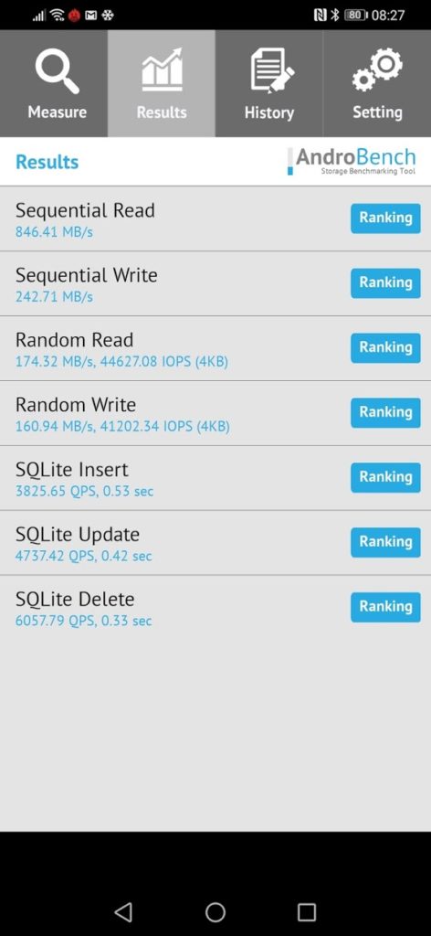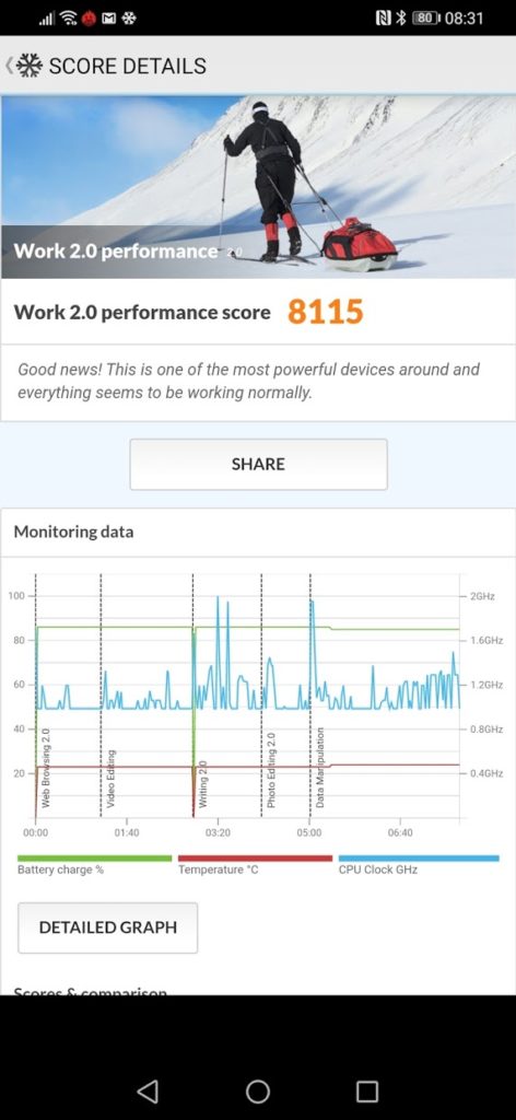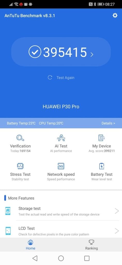 I have not run the test on my Huawei P30 Pro, it has had a years’ worth of heavy use, plus I have a large number of apps running in the background, so any benchmark result would be a disservice for such a superb phone.
