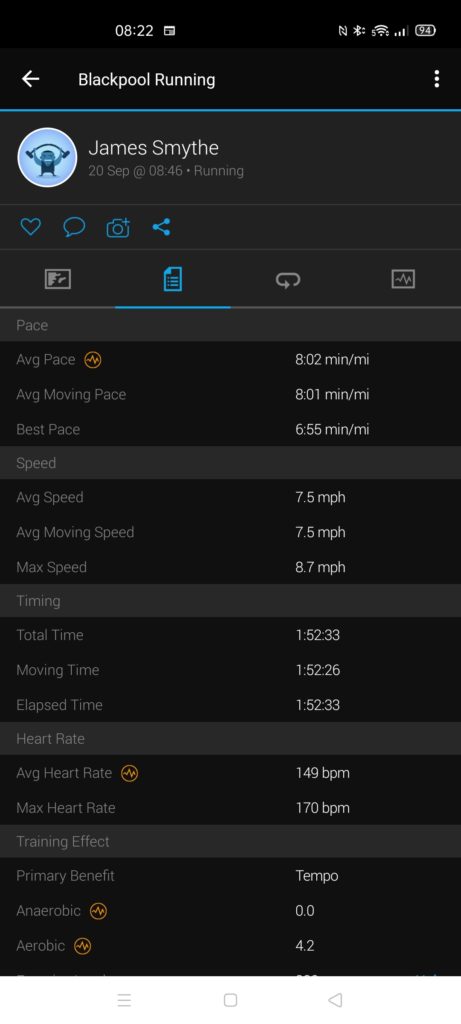 One reader asked me to check underwater hear rate accuracy.  I haven’t been swimming in over 20 years, nor do I have any intention of going into the see or a public swimming pool in the middle of a pandemic. The best test I could do was have a bath and test the HRM. It seems accurate there were no random readings, but the lack of movement to simulate arm strokes means this is not the most accurate test. One useful feature is the physical buttons that allow you to pause or hold and end and activity, rather than try to use a touchscreen that is wet.