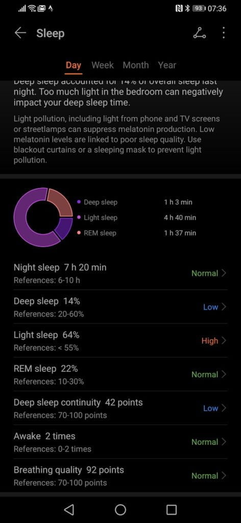 Gauging the accuracy of the stress tracking is harder, Garmin says I am not stressed at all, Huawei thinks I have medium stress most days. I would say Huawei is probably closer to the truth.