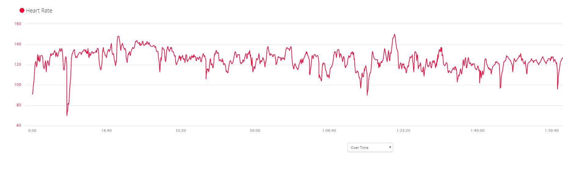 My Zwift data exported to Strava and the heart rate was tracked with the Polar OH1, with this my heart rate was recorded as 141bpm at 15 minutes 42 seconds. On my Garmin Fenix 6 using wrist HRM that recorded 139bpm.