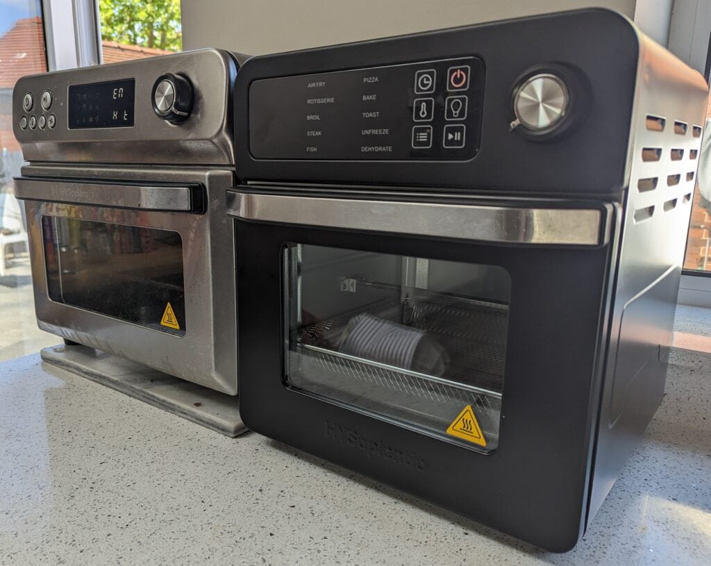 The HYSapientia 15L air fryer is almost the same but smaller, and I, therefore, also think this is excellent. I love the rotisserie function; you get a much better roast chicken out of it than sitting static on a shelf. I am also a big fan of these shelf-based air fryers as it makes it much easier to cook multiple things at once.