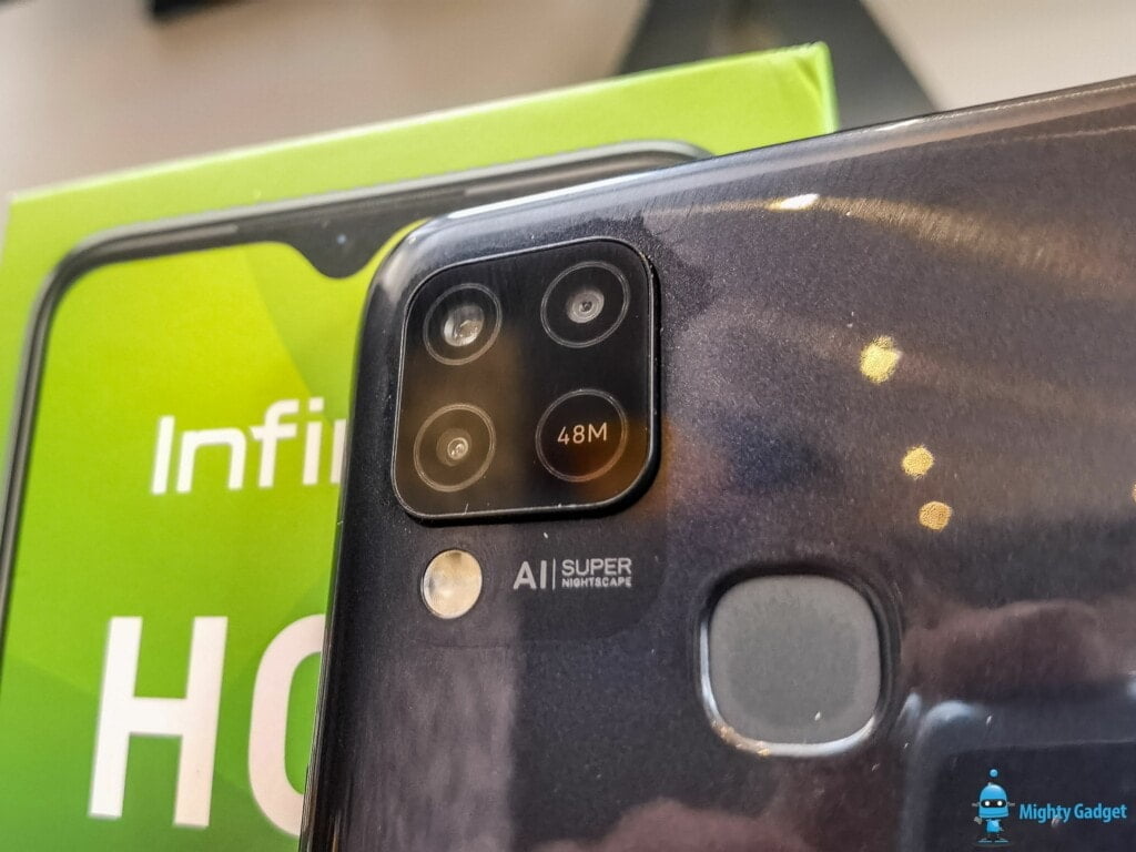 The Infinix Hot 10S NFC goes all-in on marketing BS with the camera. The square camera module, which offers a similar design to the iPhone, appears to have 4 camera lenses. The bottom right one just a circle informing you that it is a 48MP camera phone.