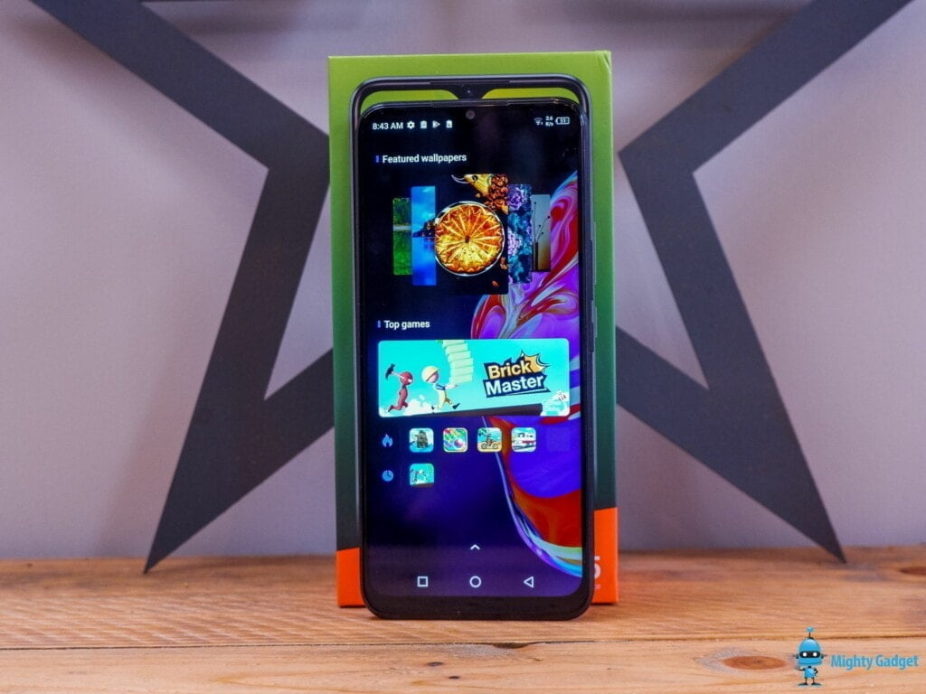 The phone looks alright; picking it up, I wouldn’t immediately think this is a $120 phone. The thing you will notice immediately is how large it is. On top of the massive 6.82″ inch display, you have moderately thick (by today’s standards) bezels.