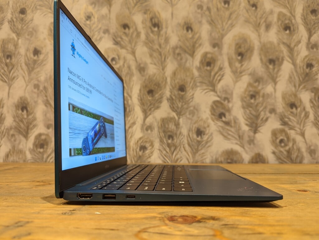 The display is also surprisingly good for such a cheap laptop (much better than the Samsung Go). It is bright enough with good colour accuracy. Moving outside and the 300nits brightness does start to struggle, but overall it is better than I’d expect for a laptop at this price.