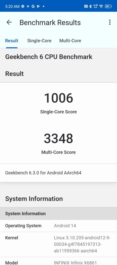 At the heart of the Infinix ZERO 40 is the MediaTek Dimensity 8200 Ultimate chipset. This is a step up from the Dimensity 8020 found in its predecessor and promises improved performance across various tasks. It is also the same chipset that was used on the Infinix GT 20 Pro which I reviewed back in May.