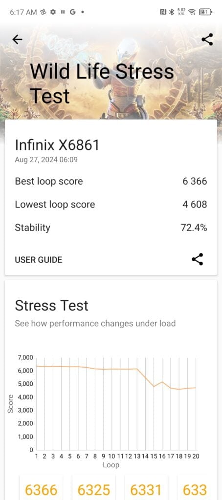 - Infinix GT 20 Pro: 6316 / 6285 / 99.5%